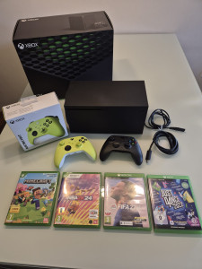 Na sprzedaż mam praktycznie nową konsolę xbox series x 1TB, kupiona w 2025 roku, użyta kilka razy, więc sprzedaję! dodatkowy pad i gry. ...