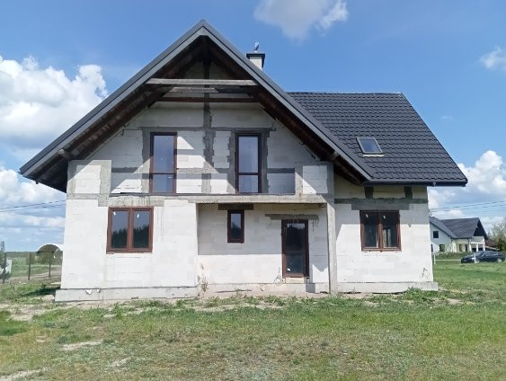 Budynek posadowiony na działce o powierzchni 3002m2. -- 50X60. Dom stan surowy zamknięty. Okna, drzwi PCV, dach kryty blachodachówką,