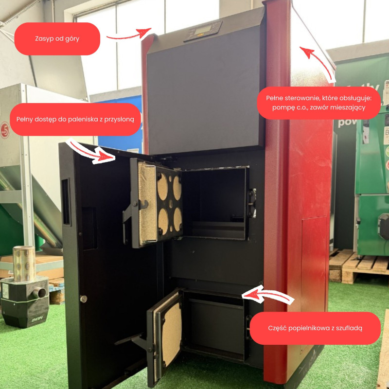 - Niesamowita sprawność energetyczna. Urządzenie charakteryzuje się sprawnością przekraczającą 93%. Co to oznacza dla Ciebie? Prawie cała energia ze spalonego pelletu trafia do Twojej instalacji grzewczej, co realnie przekłada się na niższe rachunki za paliwo.
