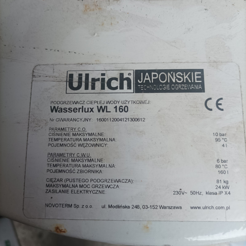 Podgrzewacz wody 160 l z wezownica