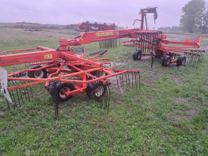 zgrabiarka KUHN 7822 grabi 7.5m do boku lub na 2 wałki 2003r gwiazdy na 6 kołach kojujących orginal w dobrym stanie sprawna lub zgrabiarka claas liner 680L nowszy typ grabi do srodka 7m skretne koła lekka wystarczy mały ciągnik